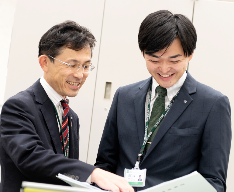 入行2年目に渉外係となり、法人と個人事業主を担当することになりました。知識も経験も不足していた私は、まず足を使ってお客さまと信頼関係を築こうと考えて動いてみたものの、その気持ちが空回りして、失敗してしまったことがあります。あるお客さまにアポイントを取って訪問し、ご挨拶と雑談だけで終わってしまった時、「用事や提案は何もないの?」とポツリとお客さまが漏らされた一言が胸に刺さりました。仕事で飛び回っている忙しい経営者がわざわざ時間をつくってくださったのに、自分の考えが足りなかった。30分でも時間を取っていただくなら、その時間を有意義だったと感じていただけるようにしなければいけない。そう猛省し、以後は必ず訪問先の資料に目を通し、周到にご提案の事前準備をしてから訪問するようにしています。