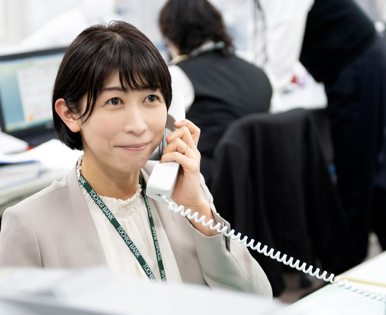 私は入行してからずっと営業店で融資業務を担当してきました。本部への異動が決まったときは、新しい業務に取り組めると期待を膨らませていましたが、いざ始まってみると仕事内容がまったく違い、まるで転職したような気分。社会人1年生として、一から勉強するつもりで法人営業部の仕事をスタートしました。